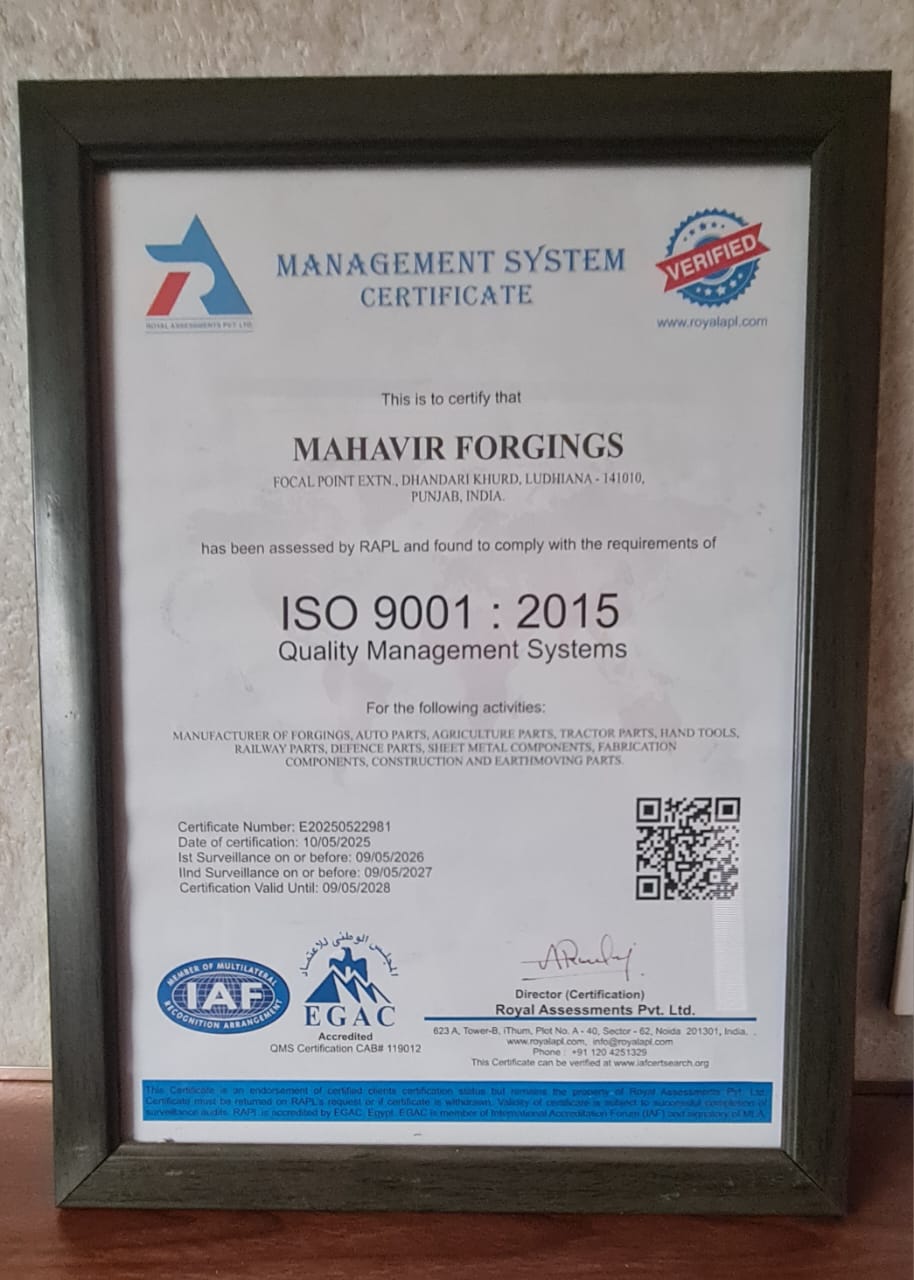 Founded in 2008 in Ludhiana, India, MAHAVIR FORGINGS has become a trusted name in the manufacturing of high-quality forged and machined components for the Automotive, Agriculture, Railway, and Engineering sectors.